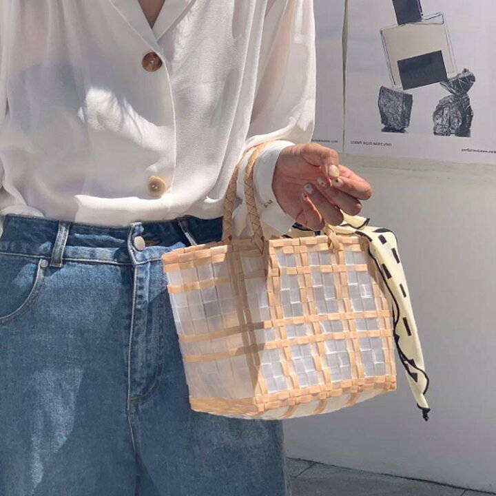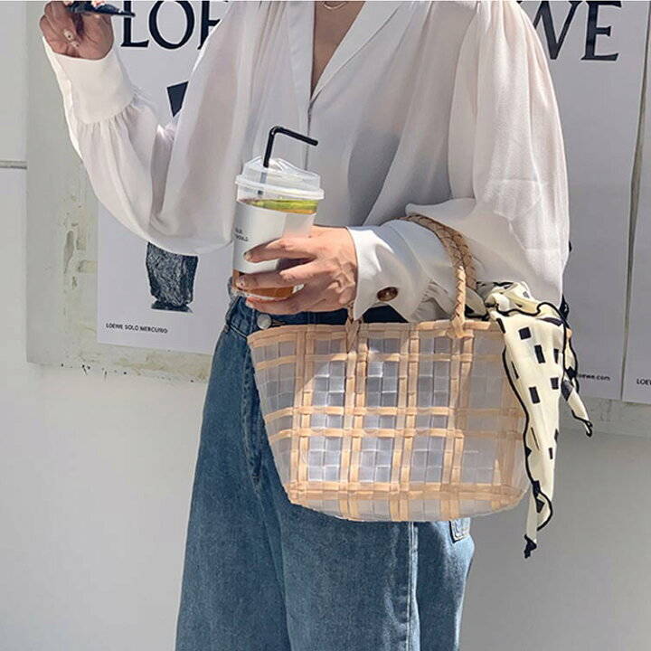 かごバッグ トート バスケット レディース ランチバッグ スカーフ付き 格子縞 透明 A4 大きめ かわいい おしゃれ ナチュラル 大容量 シンプル 軽量 春 夏 送料無料